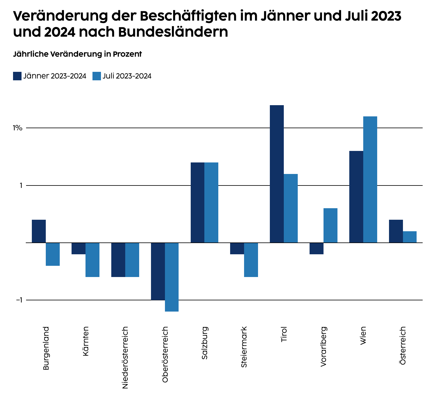 Beschäftigungsverhältnisse im Jänner und Juli 2023 und 2024 nach Bundesländern