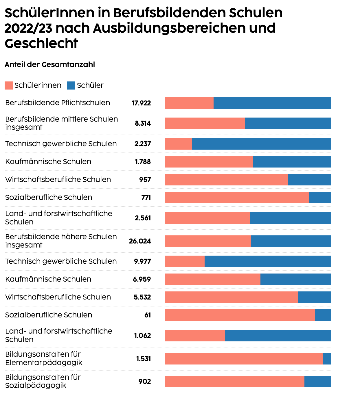 Berufsbildende Schulen nach Ausbildungsbereichen und Geschlecht 2022/2023