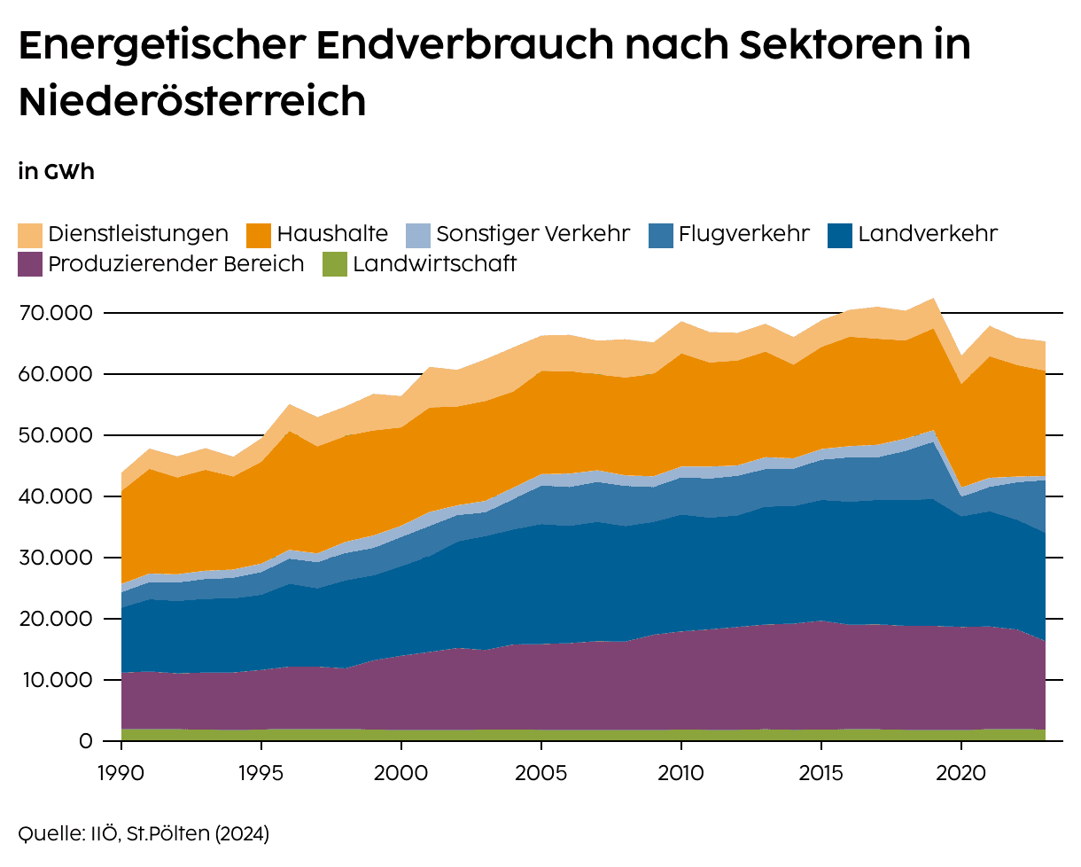 Energetischer Endverbrauch nach Sektoren in Niederösterreich und Österreich
