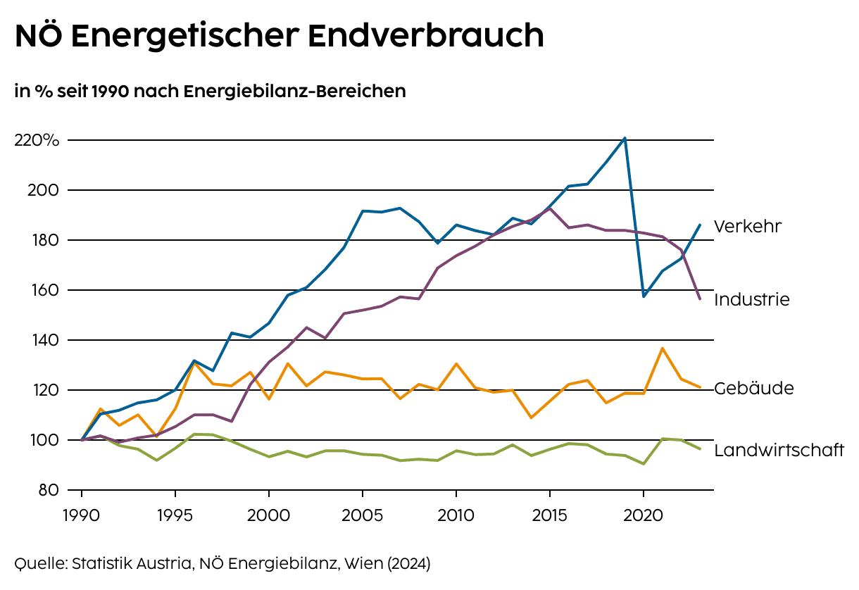 Energetischer Endverbrauch nach Sektoren in Niederösterreich und Österreich