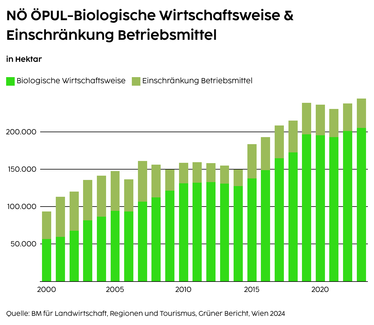 Durch das ÖPUL-Programm konnten die Bioflächen in NÖ weiter rasch wachsen!